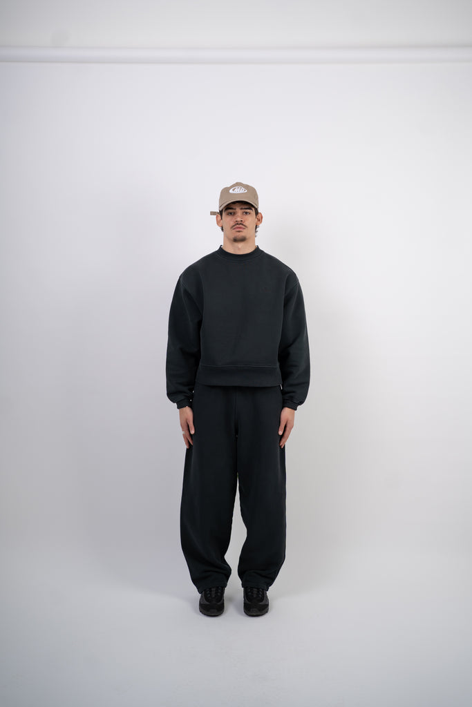 Heavyweight Wide Leg Sweatpants - Washed Black