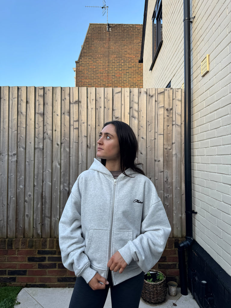 Heavyweight Boxy Zip Hoodie - Light Grey Marl